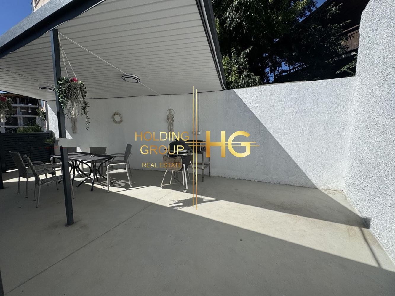 Външни екстри - голяма тераса с шезлонги и беседка.
