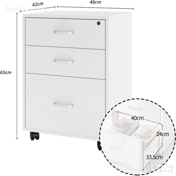 Всички чекмеджета също могат да се заключват, за да съхранявате вашите документи и предмети поверителни.