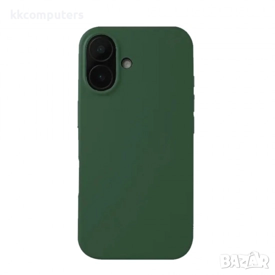 Силиконов кейс iPaky матиран и Протектор За iPhone 16 Plus (6.7), Тъмнозелен