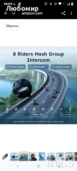 S1 Мотоциклетни Bluetooth слушалки с 3 режима на интерком, Mesh комуникация за 8 пътници
