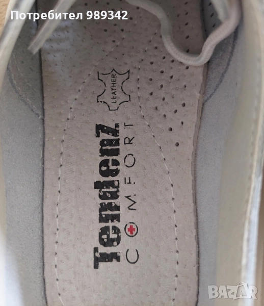 Дамски кожени обувки Tendenz от естествена кожа в бял цвят. Подходящи за пролет и есен. НОВИ!