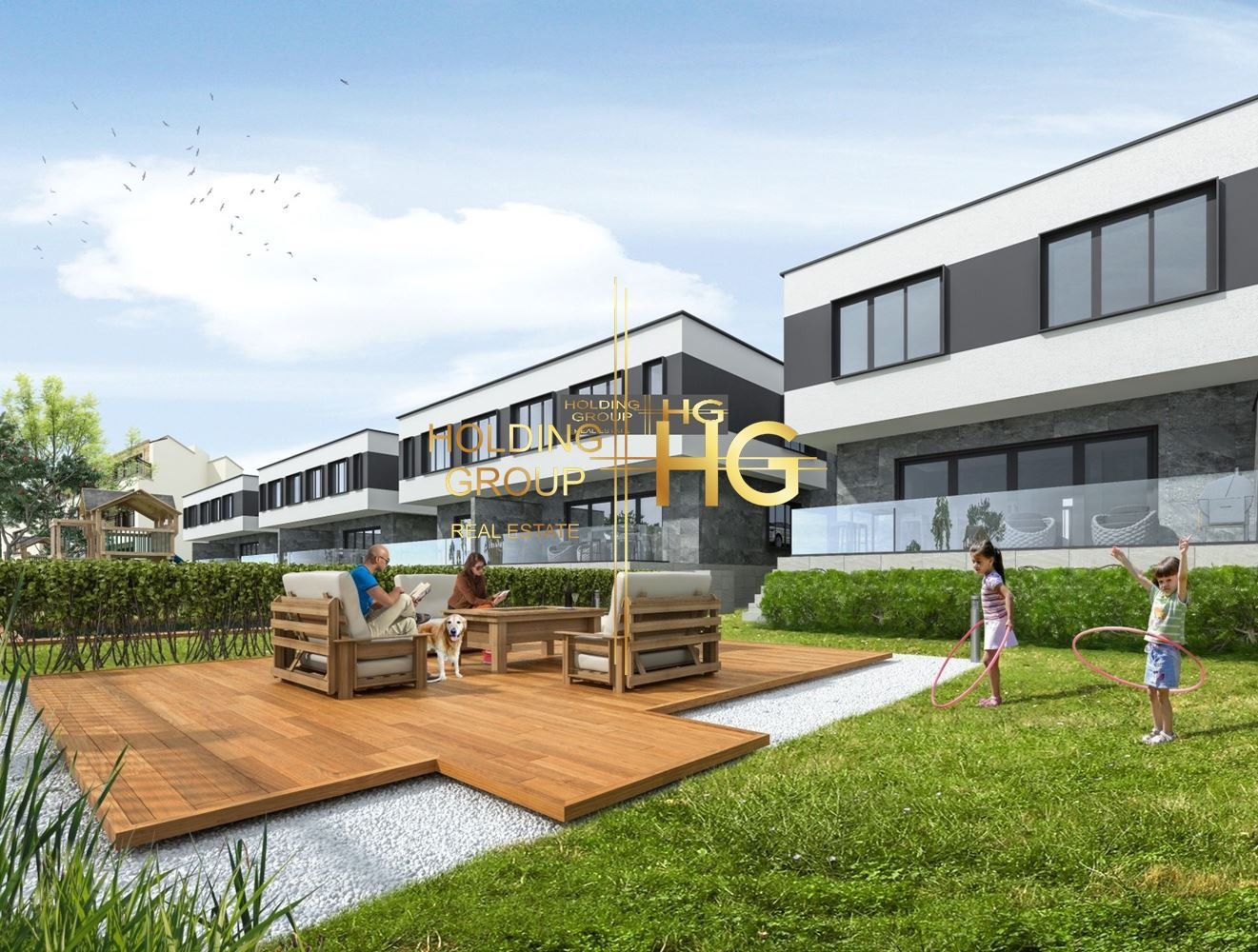 Къщата е част от комплекс от осем къщи, всяка с прилежащ двор в реална съсобственост от около 250 кв.м. и с по две прилежащи паркоместа.