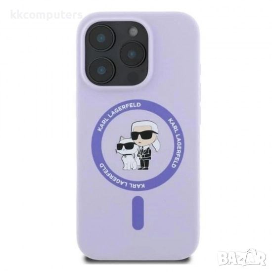 Оригинален кейс Karl Lagerfeld Silicone Karl and Choupette Heads MagSafe и Протектор За iPhone 16 Pro Max (6.9), Светлолилав