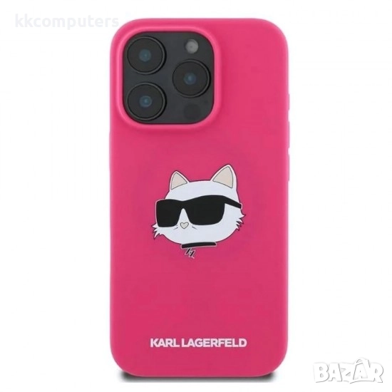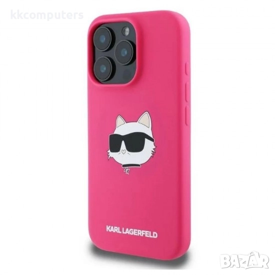 Оригинален кейс Karl Lagerfeld Silicone Choupette Head MagSafe и Протектор За iPhone 16 Pro (6.3), Тъмнорозов