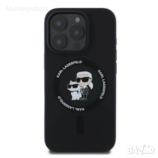 Оригинален кейс Karl Lagerfeld Silicone Karl and Choupette Heads MagSafe и Протектор За iPhone 16 Pro (6.3), Черен