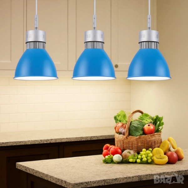 8бр/ LED висяща лампа DL219B – 30W топла светлина за плотове, острови и витрини (Ø250×H280 мм, синя)