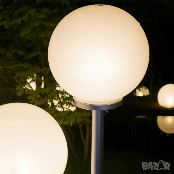 Соларна градинска лампа сфера BONETTI Ø30 см – автоматично осветление без кабели и сметки за ток