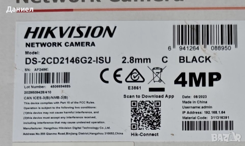 Продавам 4MP IP куполна камера с микрофон Hikvision Acusense DS-2CD2146G2-ISU. Deep Learning механизъм за класификация на обекти (човешка фигура и автомобил). Камерите са разопаковани, останали от нереализиран проект, но не са били монтирани и са като нови. Черни на цвят и са комплект с нова монтажна основа.