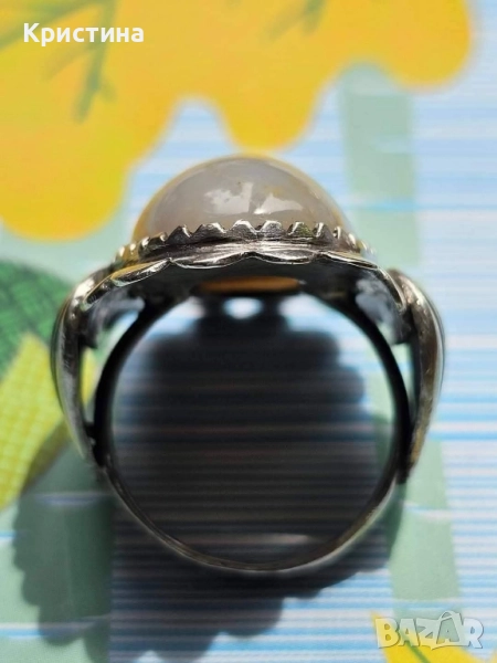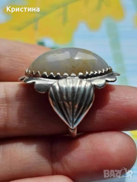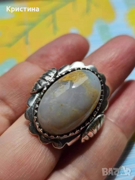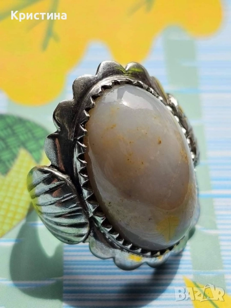 Старинен сребърен пръстен с Ахат → Обява 51962580