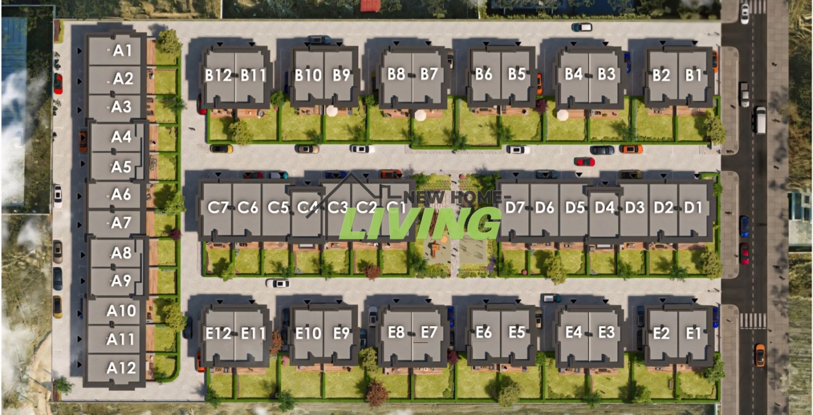 24 дуплекс къщи с площ от 180 до 185кв.м., веранда 20-22кв.м., двор от 36 до 86кв.м.