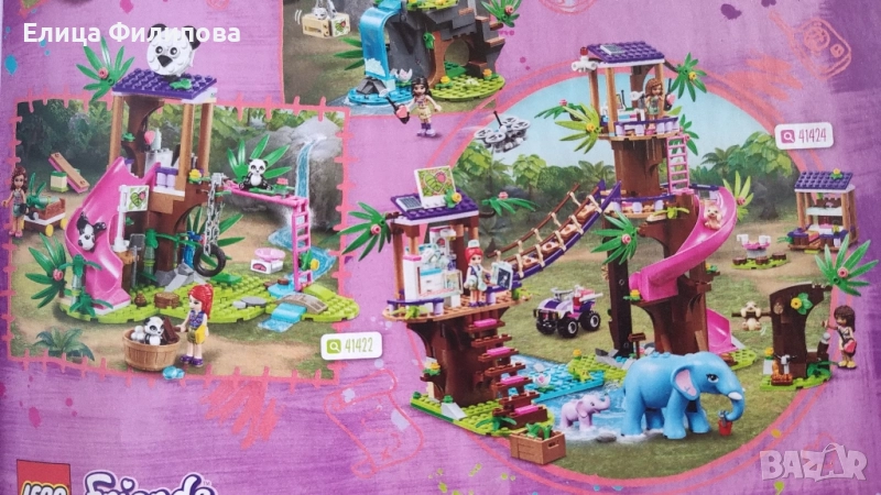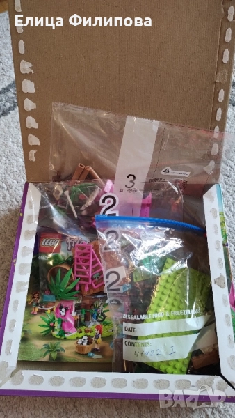 Lеgo Friends 41422 - Дървесна къща на панди в джунглата - 265 елемента - 50лв: Всички части са налични + кутията (в добро състояние) + книжка с инструкциите. Няколко елемента са подменени със сходни (вижте последните снимки) : дрехите на едното от момичетата, едно листо, 2 от цветчетата. От същата серия имам още едно лего (41424) За София (Младост 2) и Банско може лично предаване.