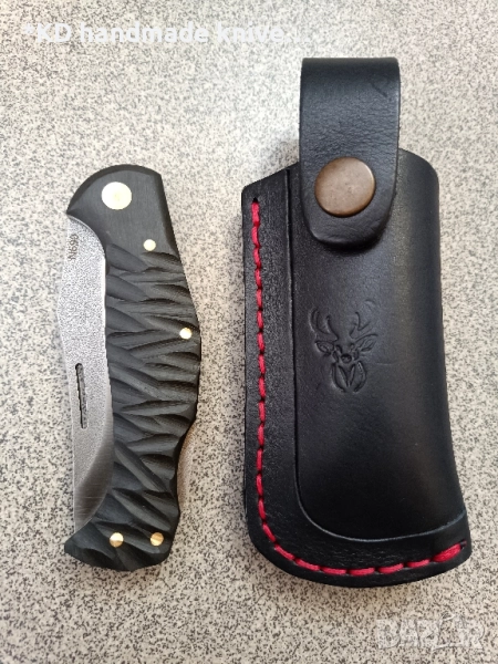 Ръчно изработен сгъваем нож + ПОДАРЪК кания от естествена кожа / джобен нож със заключващ механизъм