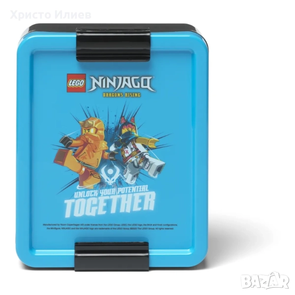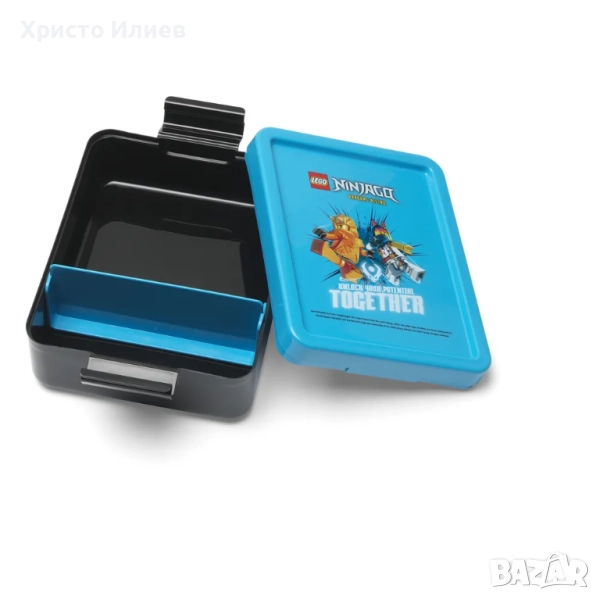 Разширете LEGO приключението с този комплект за обяд, включващ кутия за обяд и бутилка за пиене с графики LEGO. Чучурът за пиене е покрит с капачка, за да не се замърсява, когато не се използва. Капакът може да се завинтва за лесно пълнене и почистване. Подвижният разделител в кутията за обяд лесно разделя сандвичи, плодове, зеленчуци и други.