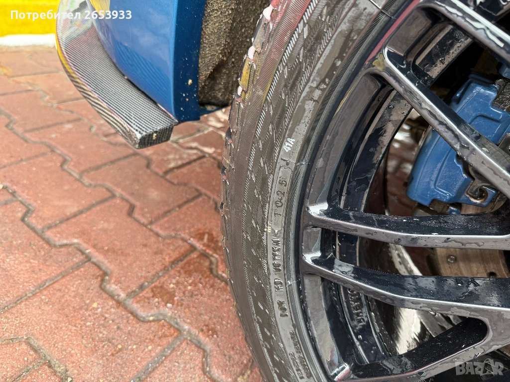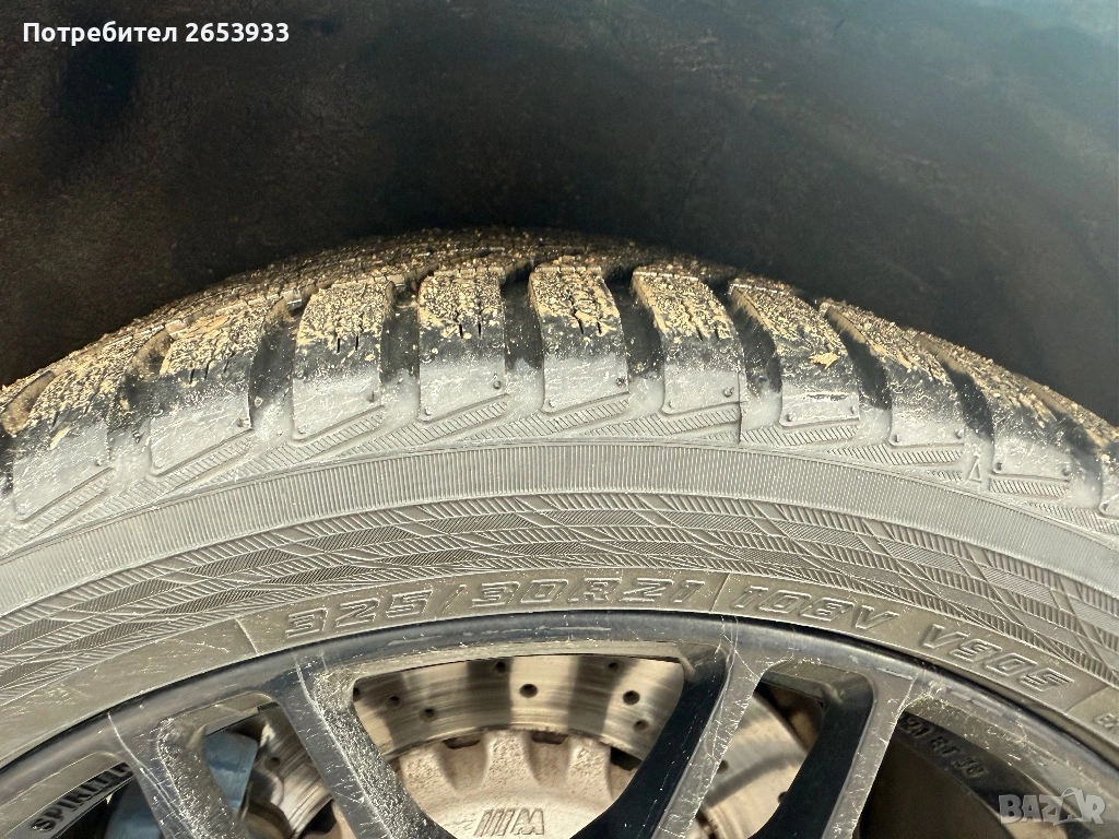 Предни 285/35/21 и задни 325/30/21. Yokohama BluEarth-Winter (V905) XL подсилени. И четирите гуми са еднакви