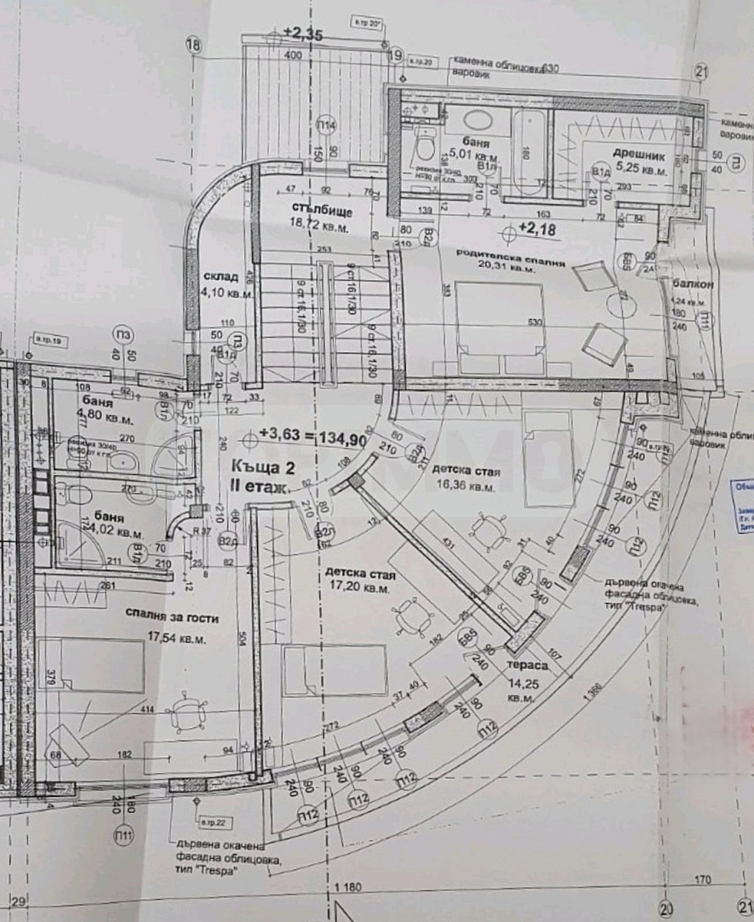 Предназначен за жилищно строителство с одобрен проект за двуетажна къща с двоен гараж, просторни помещения и четири спални.