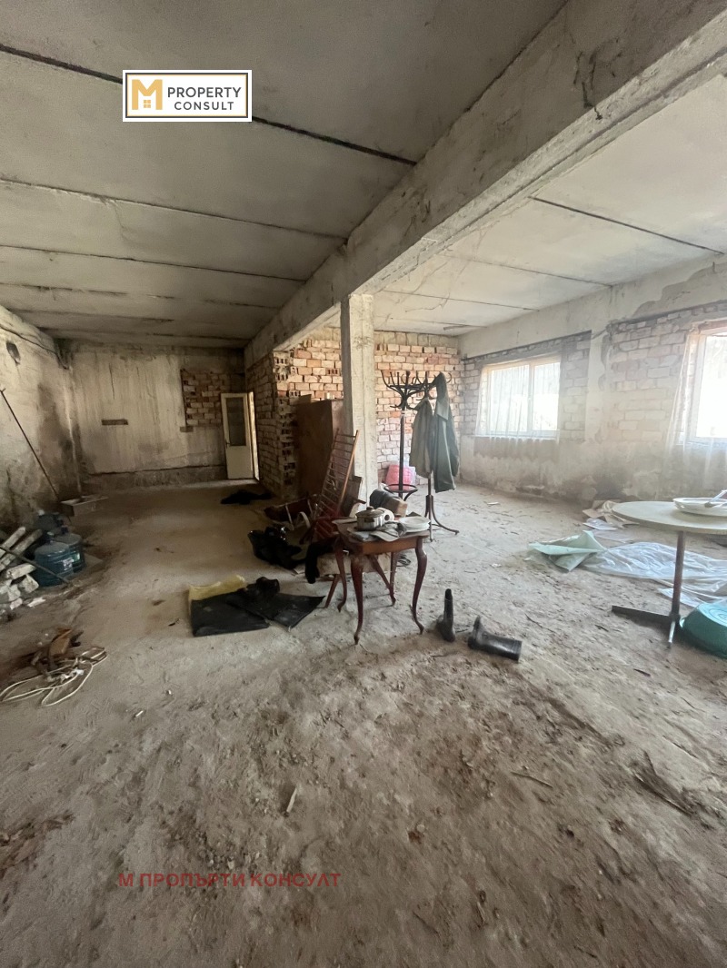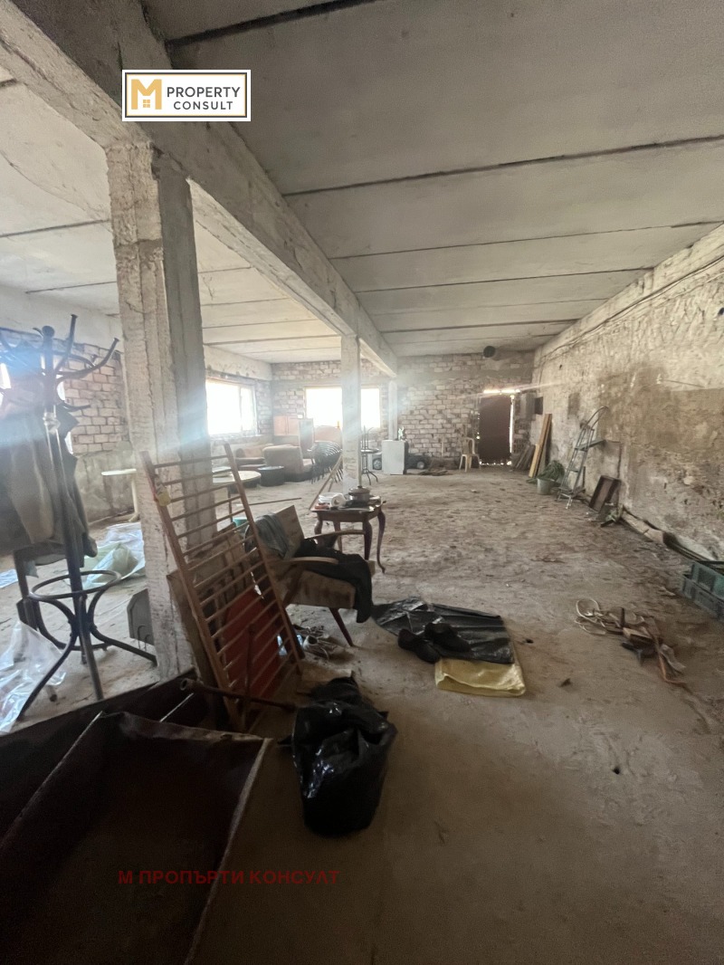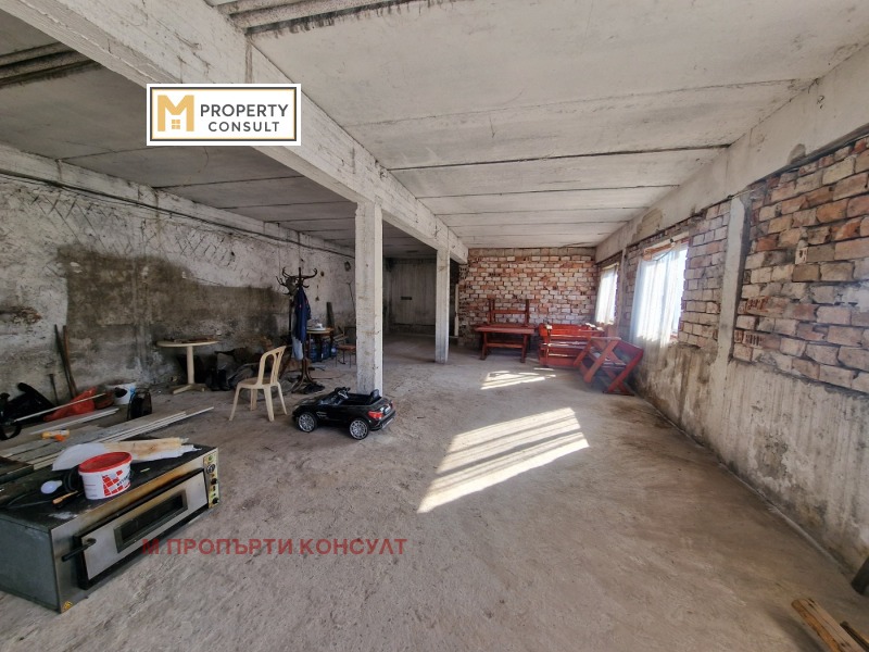 Продава промишлено помещение 200 кв.м. склад, с равен двор 550 кв.м - обща площ на имота 750 кв.м. Подходящо за всякакъв вид промишлена дейност. Намира се в района на Трудовото поделение с много лесен и бърз достъп до главен път. Състои се хале 150 кв.м и жилищна площ - кухненско помещение, дневна , спалня, баня и тоалетна отделно. Сградата е от тухла, бетон, със сменен покрив и сменена дограма. Към имота е изграден 75 кв.м гараж с канал, подходящ за сервиз. Ток - монофазен и трифазен. Допълнително в двора има постройка с навес и две външни тоалетни.