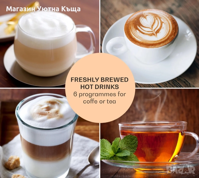- 6 програми: кафе, чай, чай с мляко, млечна пяна, капучино, лате макиато