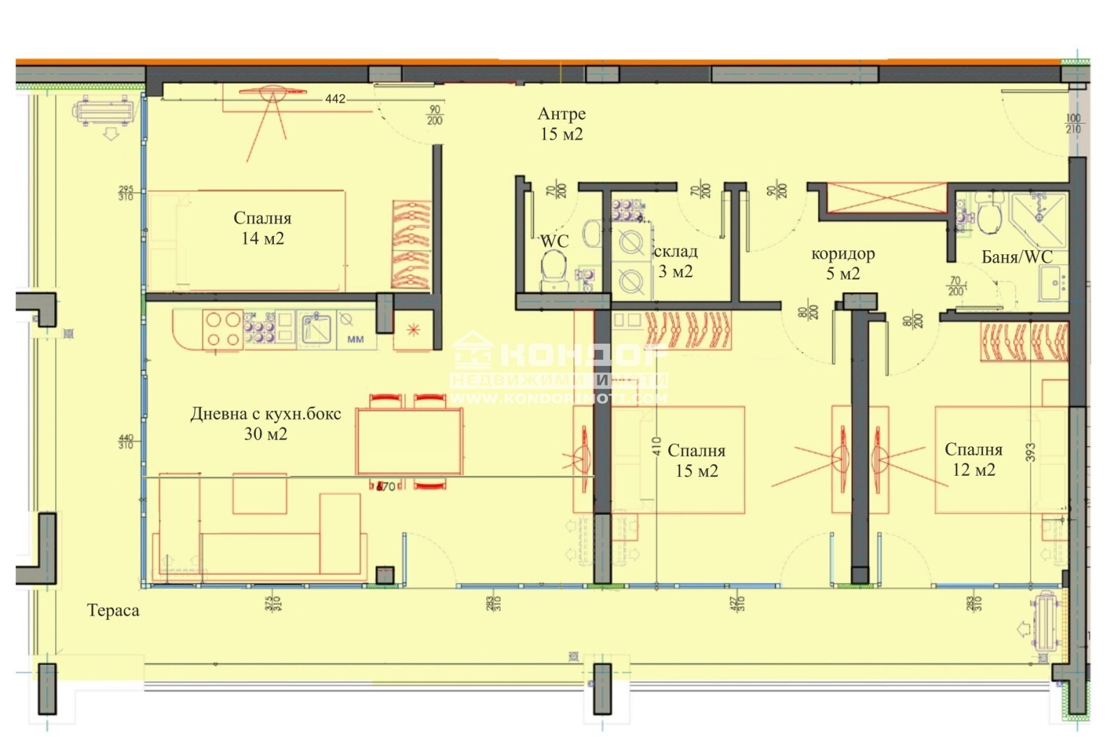 Жилището е многостайно, състои се от светла и югоизточна дневна 30 кв.м. с кухненска част и трапезария, три големи самостоятелни спални: две детски 12 и 14кв.м. и родителска 15кв.м., баня с тоалетна, втора тоалетна, склад/перално, широко входно антре с място за гардероб и една панорамна тераса с достъп от всички стаи. Апартаментите се издават на шпакловка и замазка с възможност за завършване до ключ срещу допълнително заплащане. Двете сгради имат самостоятелен подземен паркинг, между тях е обособено богато озеленено парково пространство с детски площадки, осигуряващо спокойна и просторна среда за отдих. Комплексът е разположен до големи пътни артерии даващи възможност за бърз достъп до всяка точка на града. Предлагаме няколко варианта за разсрочено плащане, обвързано с етапите на строителство и съдействие за получаване на банков кредит.ВИЖТЕ ОЩЕ ИЗГОДНИ ОФЕРТИ НА https://www.kondorimoti.com/ С ЕЖЕДНЕВНА АКТУАЛИЗАЦИЯ!