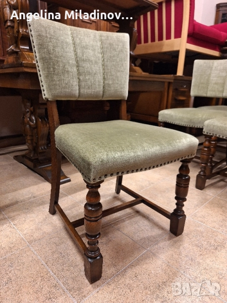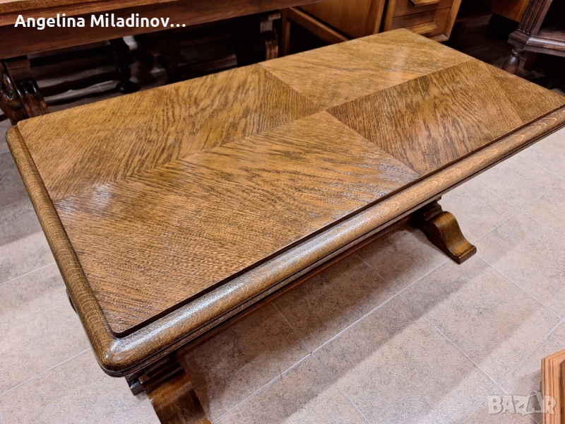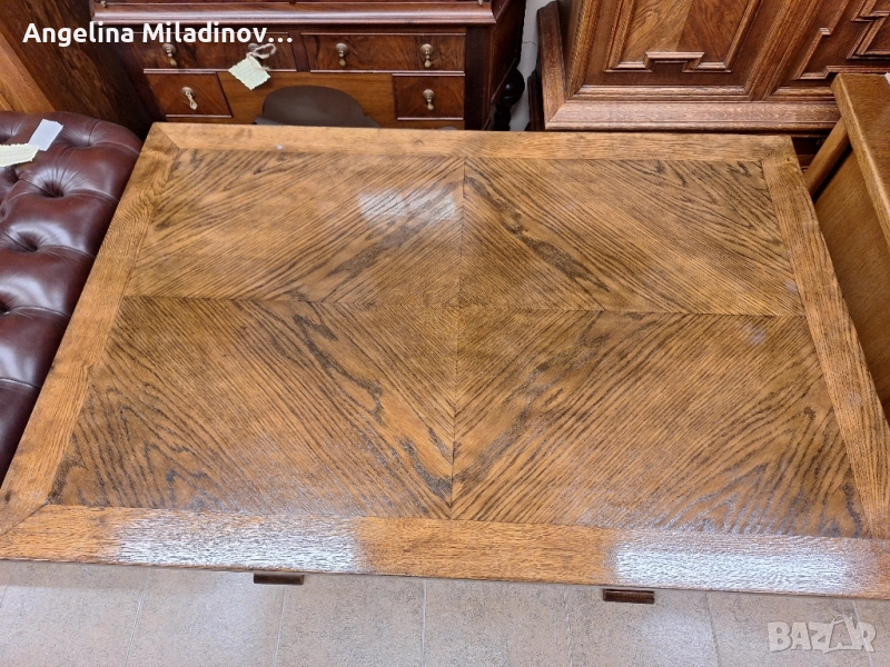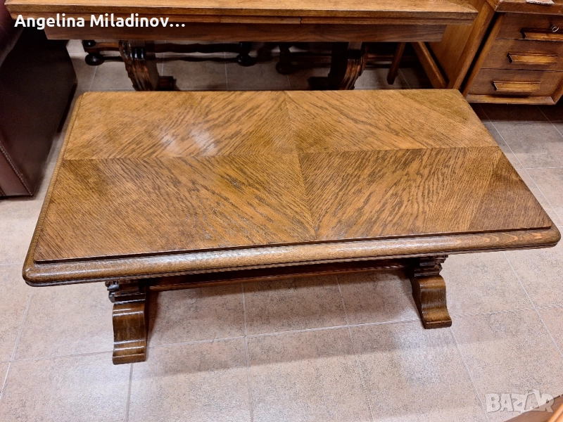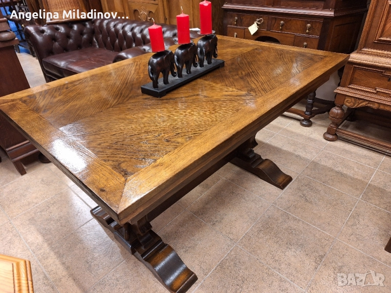 трапезна маса, внос от Дания. Масата е разтегателна дъб пълен масив. Може да се разтегне от едната или и от двете страни. Богата ръчно изработена дърворезба в комбинация с масивен плот и масивни резбовани крака правят масата НЕПОВТОРИМА! Неразличима от нова. Към масата има маса за всекидневна и к - т 6 стола. Може да се закупи целия комплект или по отделно. Разгледайте и другите ми обяви. Предлагаме и изгоден транспорт за цялата страна. Размери: Дължина - 133 см. Ширина - 89 см. Височина - 73 см. Розгегната - 190/245 см. Цена - 880 лв. 449,94 €. Размери на масата за всекидневна - 115/60/58 см. - 680 лв. 347,68 €. Размери на столовете - 50/56/90 см - 600 лв. 306,78€. Цена на целия комплект - 2160 лв 1104,39 €.