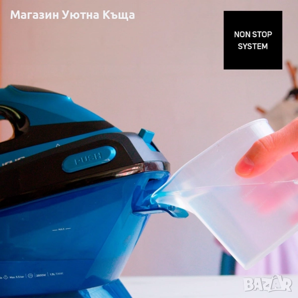 - Непрекъсната пара 130 г/мин - за равномерно гладене