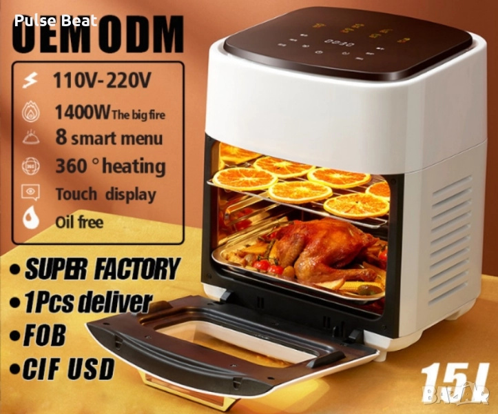 рофесионален AirFryer – 15L, 2400W, дигитален фритюрник с горещ въздух Гответе бързо, здравословно и без излишна мазнина с професионалния AirFryer 15L. С мощност от 2400W и технология за циркулация на горещ въздух, този уред намалява съдържанието на мазнини в храната с до 80%, без да прави компромис с вкуса или хрупкавата текстура. ✔ Капацитет 15 литра – идеален за цялото семейство ✔ Дигитален LED дисплей и 10 програми за различни ястия ✔ Температурен диапазон 80°C – 200°C и таймер до 60 минути ✔ Прозорец със светлина за наблюдение на процеса в реално време ✔ Автоматично изключване за безопасност ✔ Включени аксесоари: тава, скара, кошница за пържене, 100 хартии за печене ✔ Подходящ за съдомиялна – лесно почистване С AirFryer можете да приготвяте пържени картофи, месо, риба, зеленчуци или дори сладкиши – всичко с минимално количество мазнина и максимално вкус. ➡ Подобрете ежедневното си хранене с модерен и практичен дизайн, който ще се впише във всяка кухня.