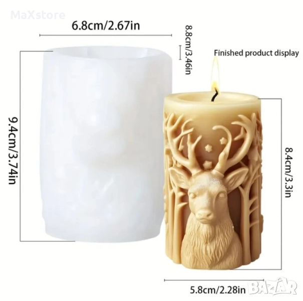 3D 2 модела елен цилиндър Силиконов молд форма за свещи гипс сапун смола → Обява 51965169