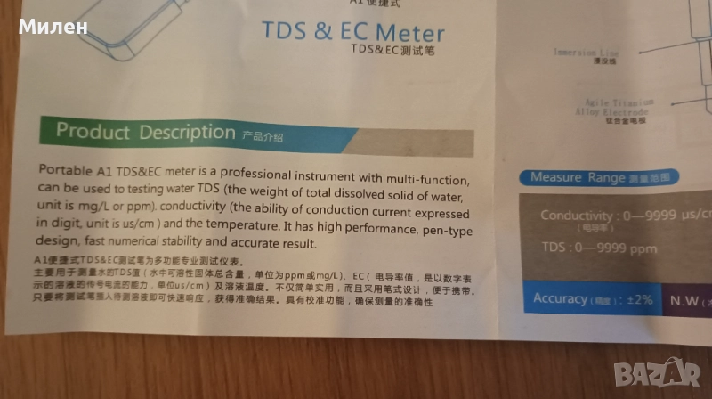 Тестер за питейна вода, измерва: