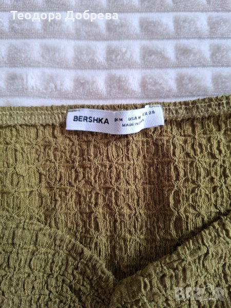 Дамска блуза BERSHKA с дълъг ръкав - маслинено зелена → Обява 51965571