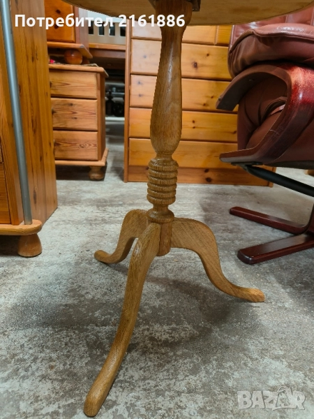 N 3896 Дъбова спомагателна масичка с диаметър 44 см и височина 57 см, отлично състояние