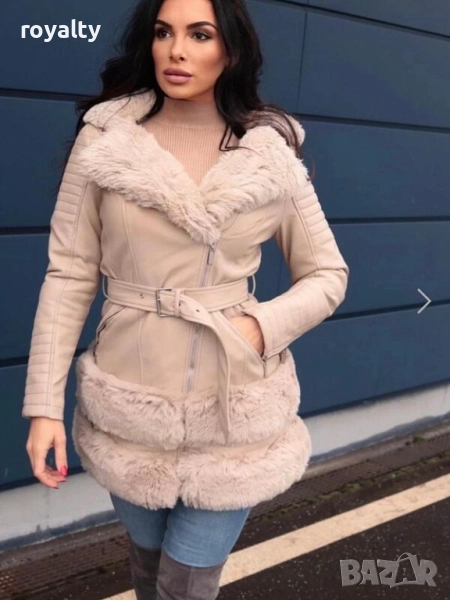 Дамско бежово кожено яке с пух , снимка 1 - Якета - 51966092 Дамско бежово кожено яке с пух , снимка 2 - Якета - 51966092 1/2