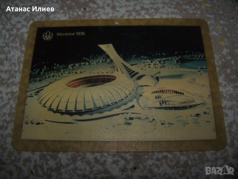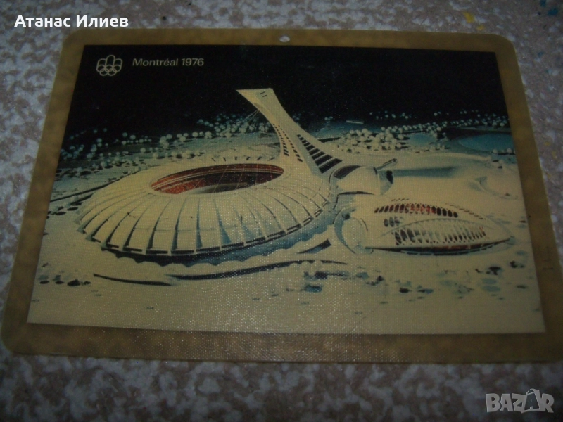 Страхотна сувенирна картичка от олимпиадата в Монреал 1976г. Картичката е капсулирана в прозрачно твърдо защитно покритие.