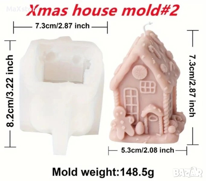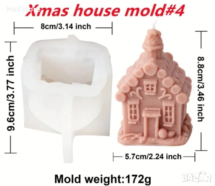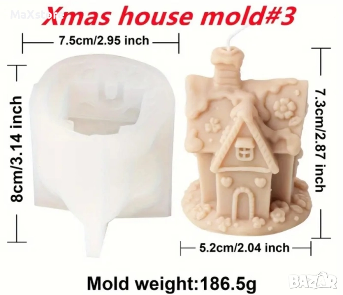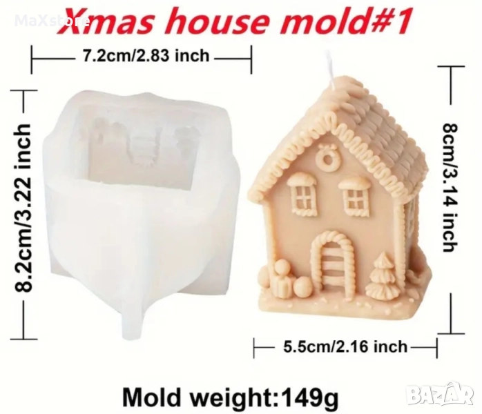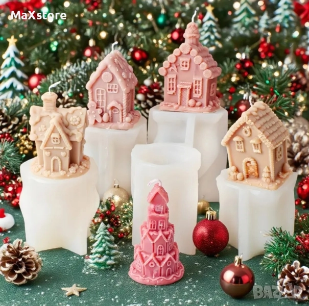 3D Коледна къща къщичка Силиконов молд форма за свещи гипс сапун смола → Обява 51967457