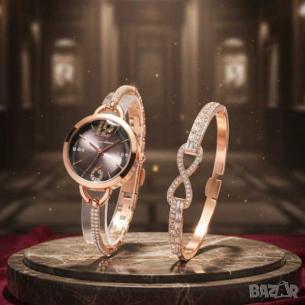 Комплект за нея: часовник и гривна с кристали – изискан стил всеки ден