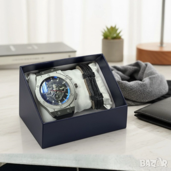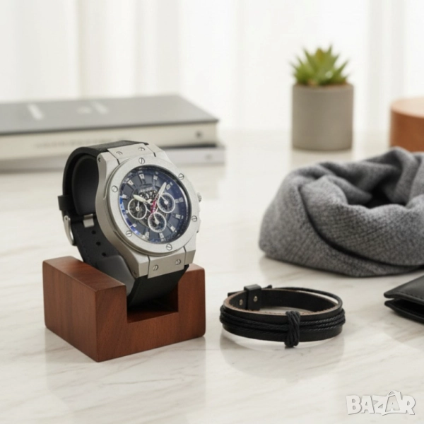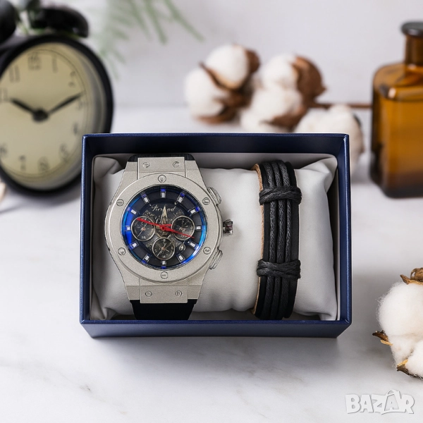 Стилен мъжки подарък – часовник и гривна в комплект