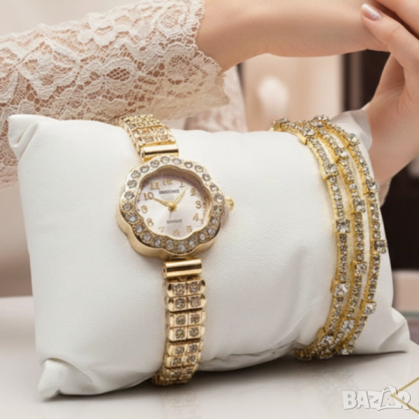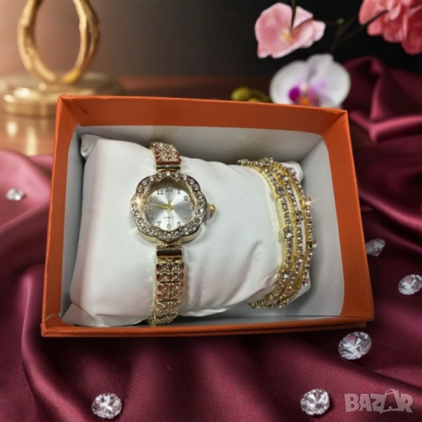 Тип: дамски часовник с кварцов механизъм + 3 декоративни гривни;
