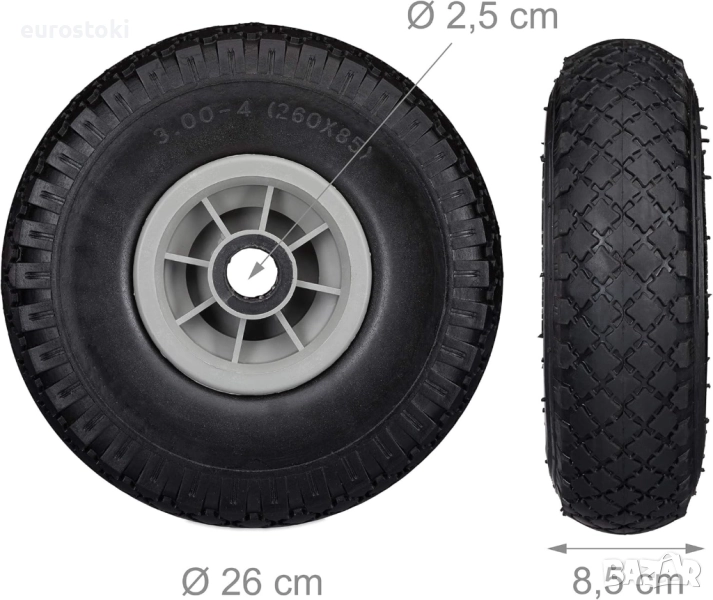 Комплект включва: 2 броя колела за транспортна количка 3.00-4″