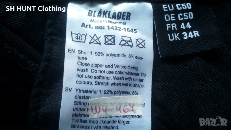Марка: BLAKLADER 1422 4-WAY-STRETCH SERVICE Work Trouser - Изцяло еластичен работен панталон. Размер: 50 / M - ширина в талията при опънат ластик 45,5 см , ширина в талията при свит ластик 40 см , дължина 103 см.