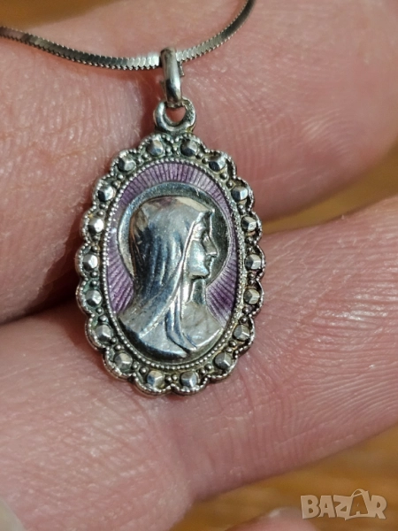 Старинен сребърен медальон Дева Мария, богородица, с орнаменти сребърна икона на богодорица