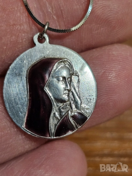 Старинен сребърен медальон Дева Мария, богородица с емайл сребърна икона на богодорица сребро