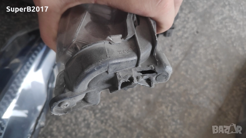 2-ри ляв фар - стъклото е здраво има нужда от леко полиране, всички крачета за закрепване са счупени, горното от към калника дори е счупен корпуса заедно с крачето, има моторче за регулиране. Цена - 130 лв