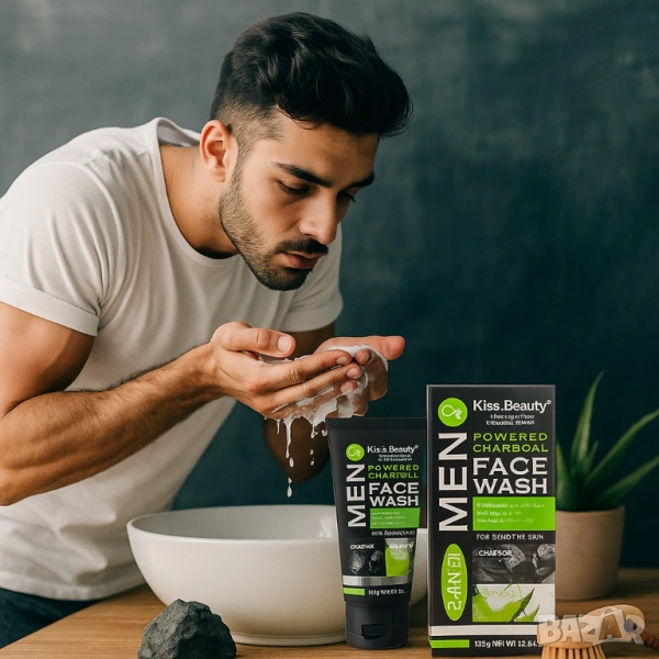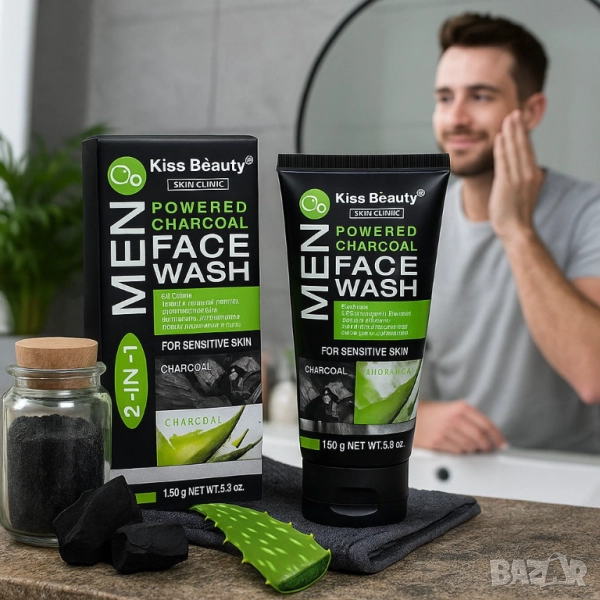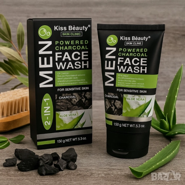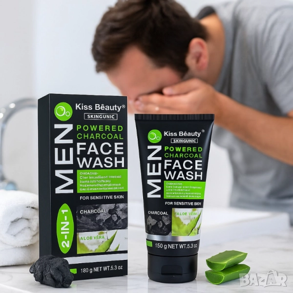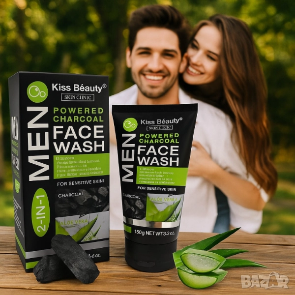 Дълбокопочистващ гел за лице с алое и черен въглен за мъже – Срещу омазняване, черни точки и раздраз