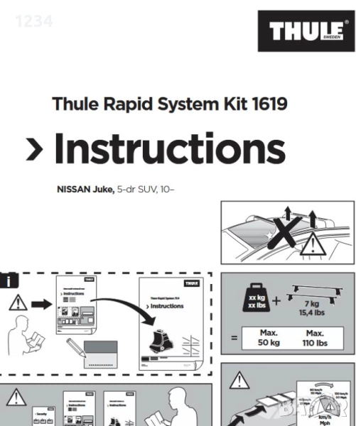 С монтажен кит THULE 1619 за следните модели
