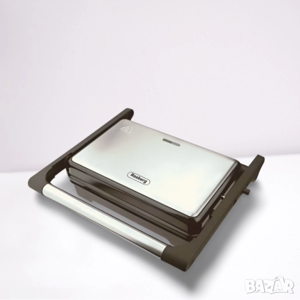 Тостер-сандвич Rosberg 1500W, Грил незалепващи бр. 1 плочи, Инокс с черно, 2 ГОДИНИ ГАРАНЦИЯ
