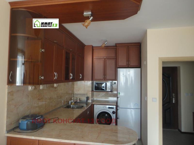Двустаен, напълно обзаведен апартамент в района на Градската градина. Разпределение: всекидневна с кухненски бокс, спалня, голяма остъклена тераса, баня и тоалетна заедно! Подовата настилка е теракот! Жилището е с PVC дограма навсякъде и външна топлоизолация. Напълно обзаведено с мебели и всички ел.уреди печка, пералня, хладилник, климатик и телевизор. Чист и поддържан вход с хидравличен асансьор! ОФЕРТА 1027