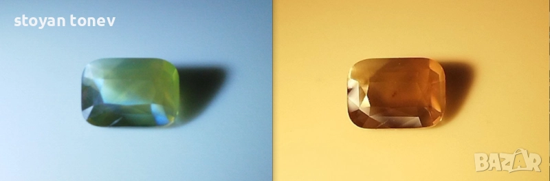 Изящен александрит с преливащи един в друг тонове и магическа смяна на цветовете. Великолепен и неповторим.