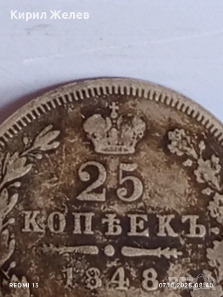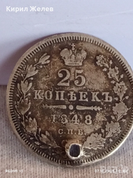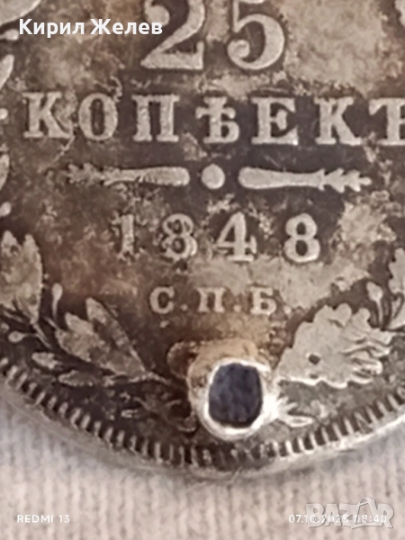 Сребърна монета 25 копейки 1948г. Царска Русия рядка за КОЛЕКЦИЯ 38016 → Обява 51970263