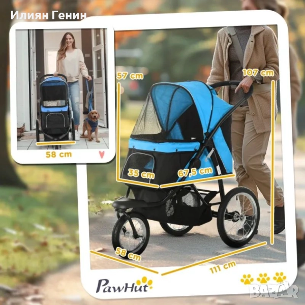 Кучешка количка PawHut с функция Jogger до 20 кг, сгъваем мрежест прозорец, кош за съхранение, син, 111 x 58 x 107 см - 160.00лв.