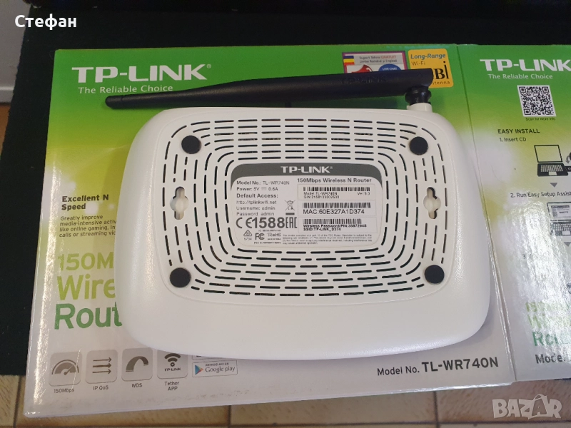 Рутер TP-Link TL-WR740NПълен комплект. В отлично техническо и визуално състояние.
