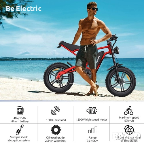 Последен модел 20 цолов електрически велосипед Hidoes B6, с мощен двигател 1200W, в комбинация с 48V батерия с капацитет от 15.6AH . Пробег с едно зареждане: 70-80км.