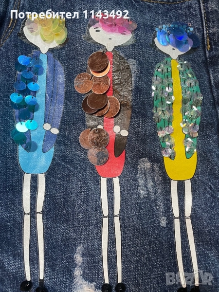 Дънки с апликация, секси модел, лек бойфренд, накъсани места, мек дънков плат. Купих ги от малко бутиче в Корфу, но така и не ги обух. Размер С, талия 40 см, дължина 88 см